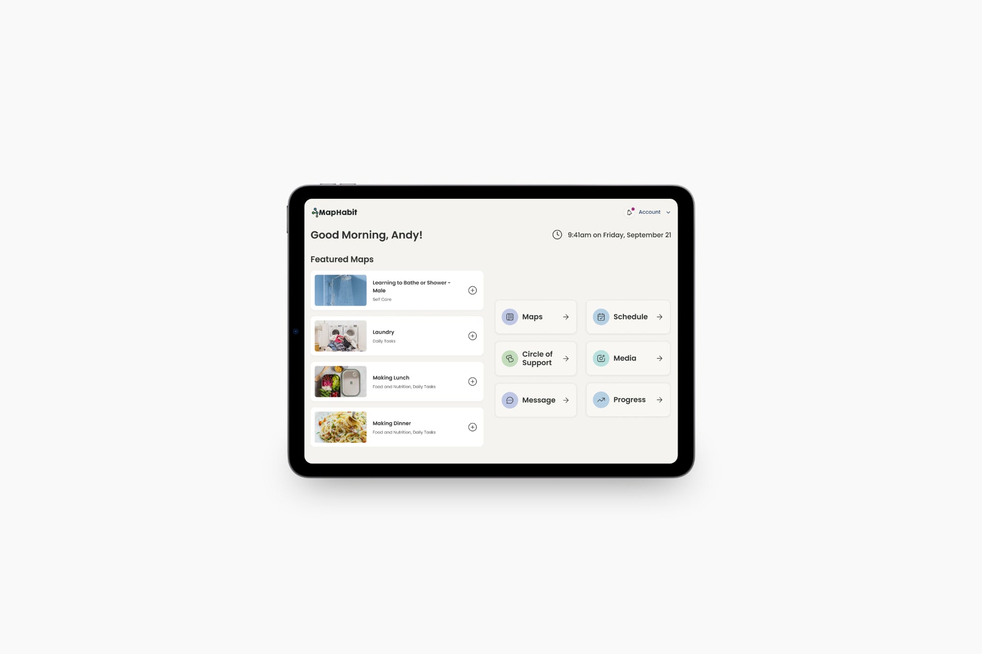 “Previously reliant on constant verbal cues, our member, [a 7-year-old boy with autism], now independently follows a step-by-step routine with the [MapHabit] tablet, managing tasks from breakfast to showering. With decreased assistance needed, he responds effectively to alarms for specific tasks, demonstrating improved understanding and independence.”